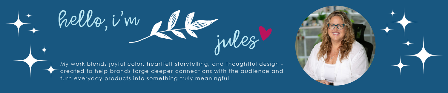 Hello, you can call me Jules, a cherished nickname from my childhood. I have been drawing, creating, and painting since I was a little girl. Currently based in the vibrant southern United States, I live my life between swatches of color and an endless amount of inspiration. Joined with my husband, three kids, and two sweet Cavalier pups.